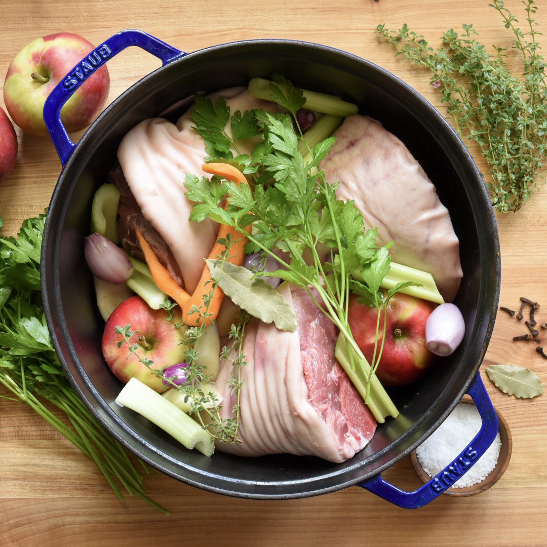 Our efforts to understand our food sources better has led us to the conclusion that one of the biggest opportunities to improve things for the farmers and their animals, is a return to using as many cuts from each, and every animal as possible. Beyond the mainstream cuts of roasts, chops, ribs and bacon there are so many delicious and underutilized cuts to be enjoyed. One of my personal favourites is Pork Hocks.
